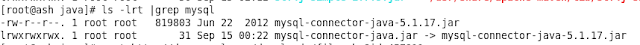[root@ash java]# ln -nsf mysql-connector-java-5.1.36-bin.jar mysql-connector-java.jar